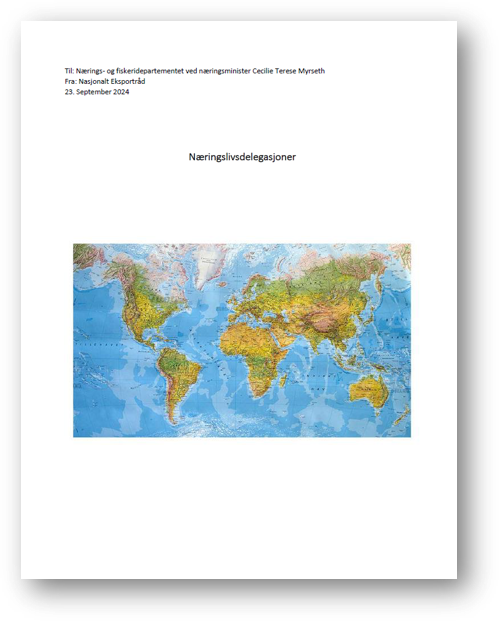 Nasjonalt eksportråd leverte i september 2024 en rapport til næringsministeren om næringslivsdelegasjoner.