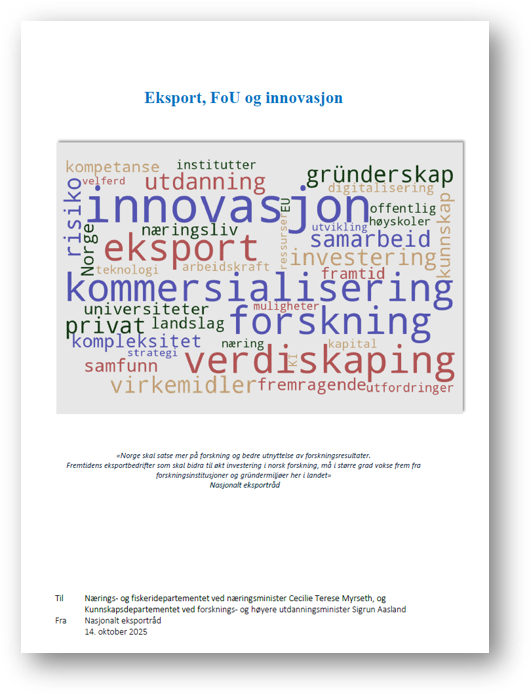 Nasjonalt eksportråd leverte i oktober 2025 en rapport til næringsministeren om eksport, FoU og Innovasjon.